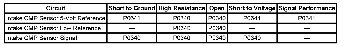 - Intake Camshaft Position (CMP) Sensor Performance
