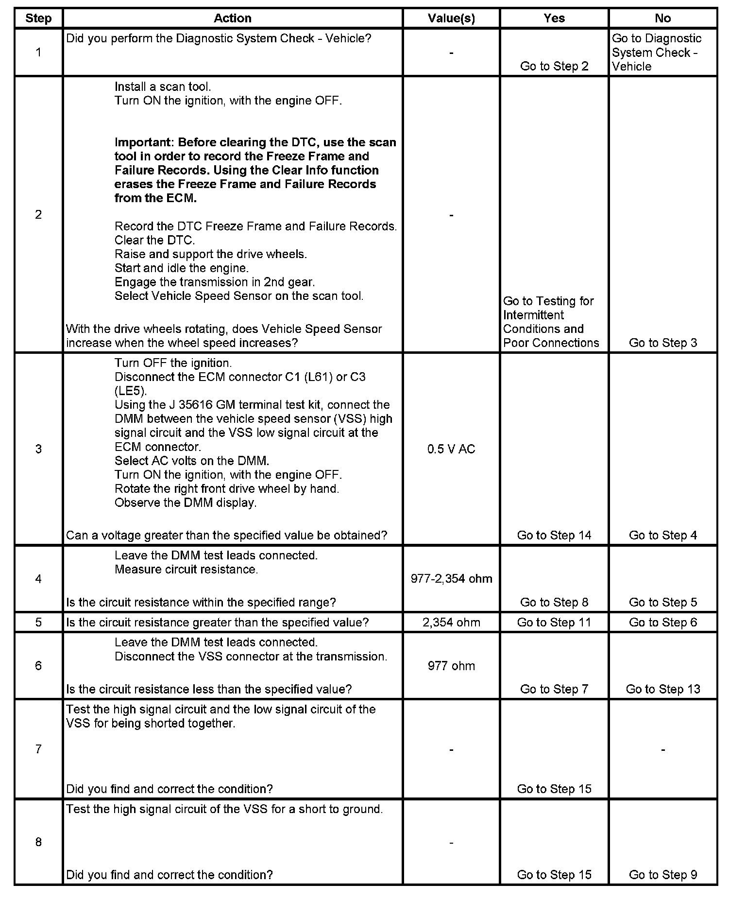 3. This step tests the ability of the VSS to produce an AC voltage. This step also verifies the integrity of the wiring to the ECM.