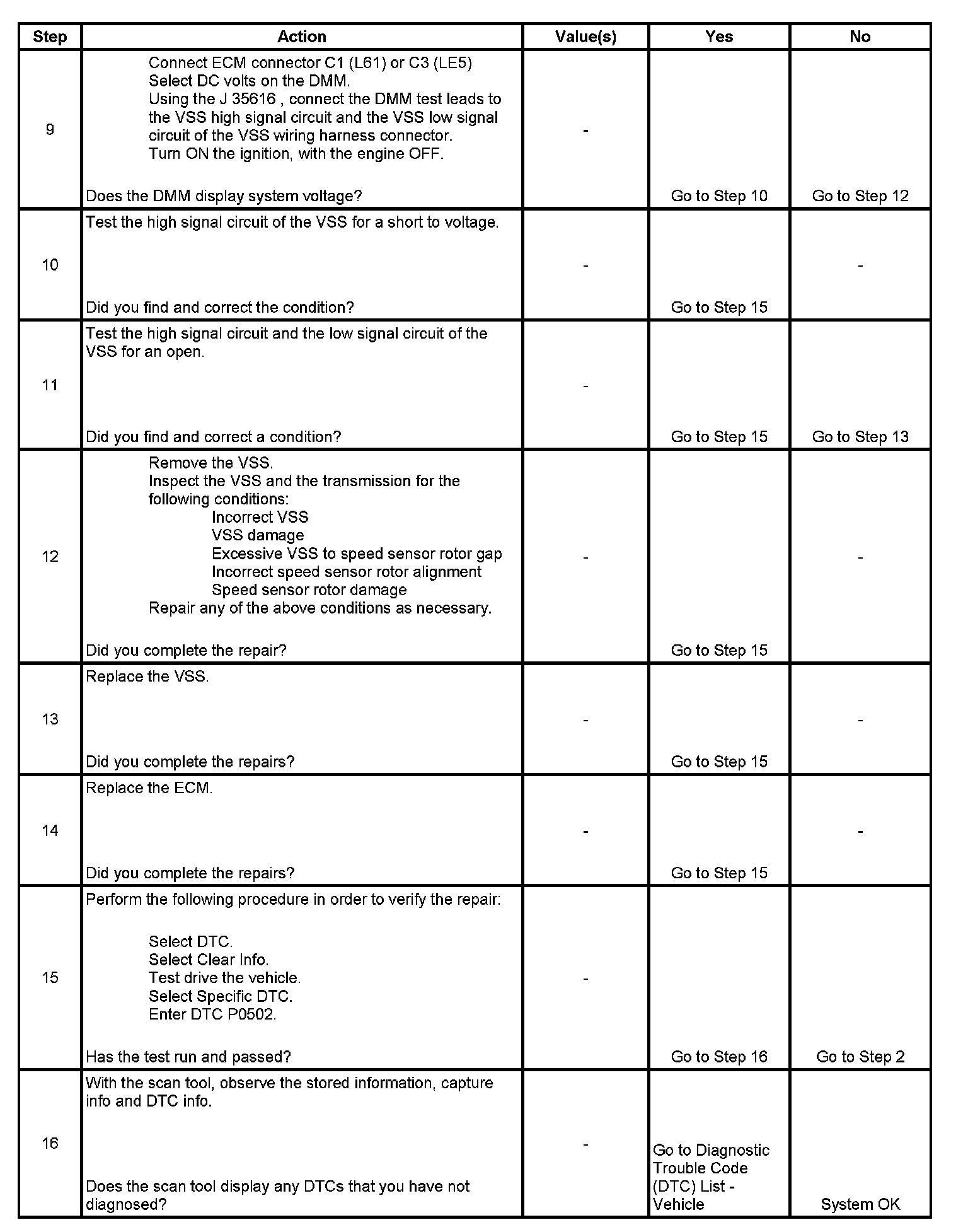 If the ECM detects no vehicle speed for a specified length of time while other sensors indicate that the vehicle is moving, DTC P0502 sets. DTC P0502 is a type B DTC.