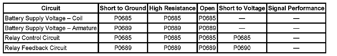 DTC P0685, P0689, or P0690