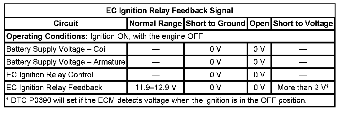 - Engine Controls Ignition Relay Feedback Circuit High Voltage