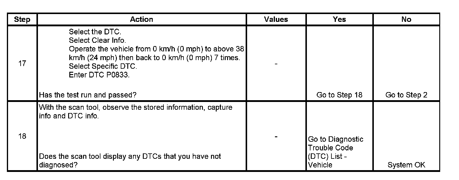 When the ECM detects a large number of gear changes without detecting a clutch switch transition, DTC P0833 sets. DTC P0833 is a type B DTC.