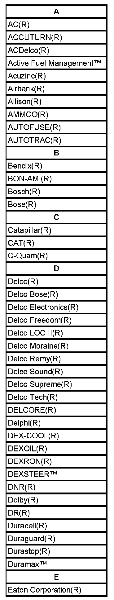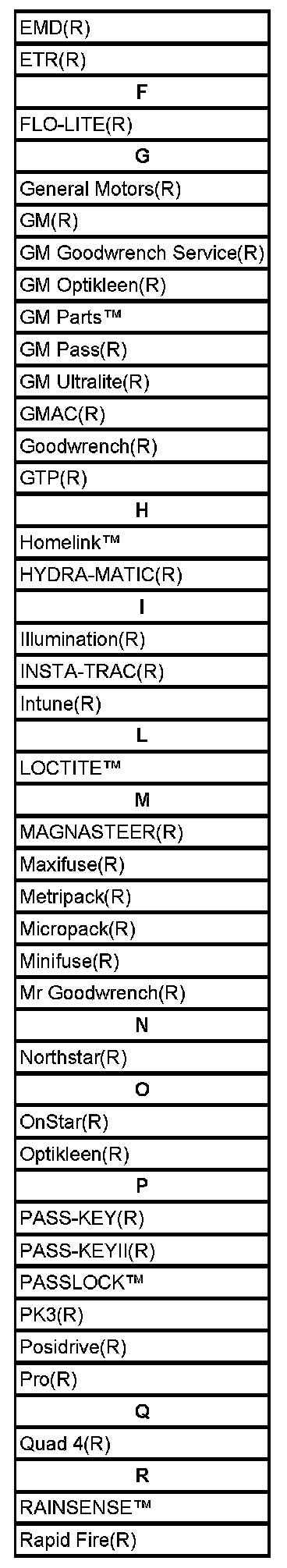 Listed below are Registered Trademarks ((R)) or Non-Registered Trademarks ((TM)) which may appear in this Service Data.