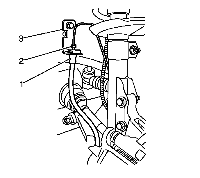 5. Remove the brake hose bracket retaining bolt (3).
