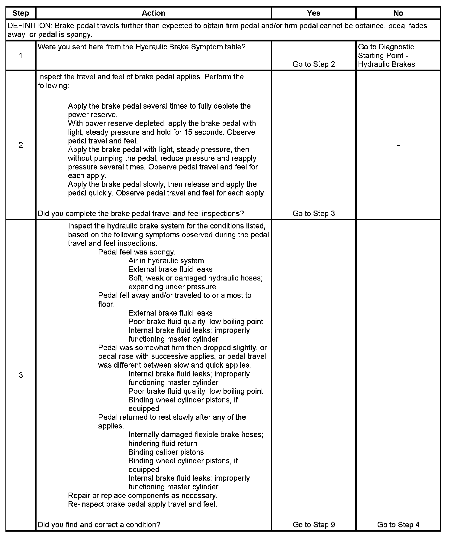 Brake Pedal Excessive Travel