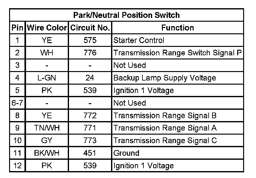 Park/Neutral Position Switch:
