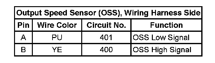 Output Speed Sensor (OSS), Wiring Harness Side: