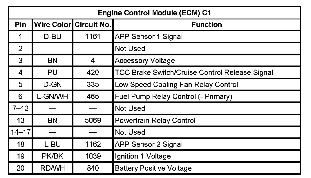 Engine Control Module (ECM) C1 (Pin 1 To 20):