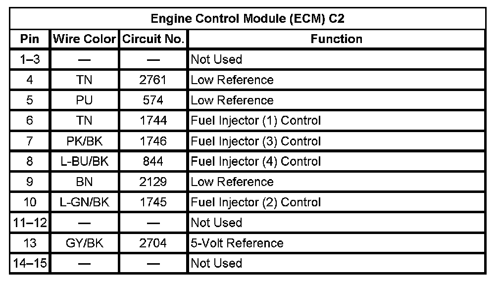 Engine Control Module (ECM) C2 (Pin 1 To 15):