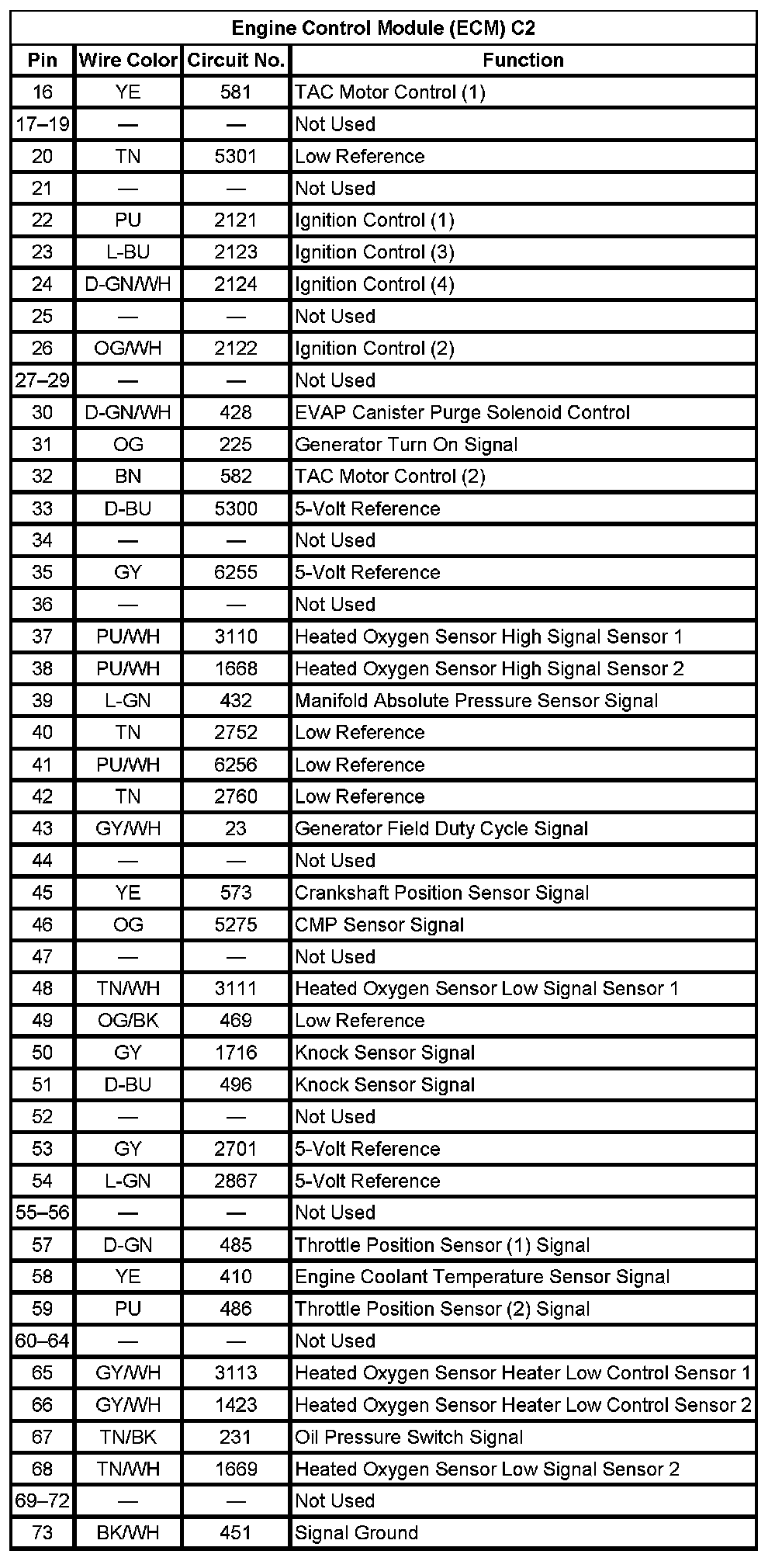 Engine Control Module (ECM) C2 (Pin 16 To 73):