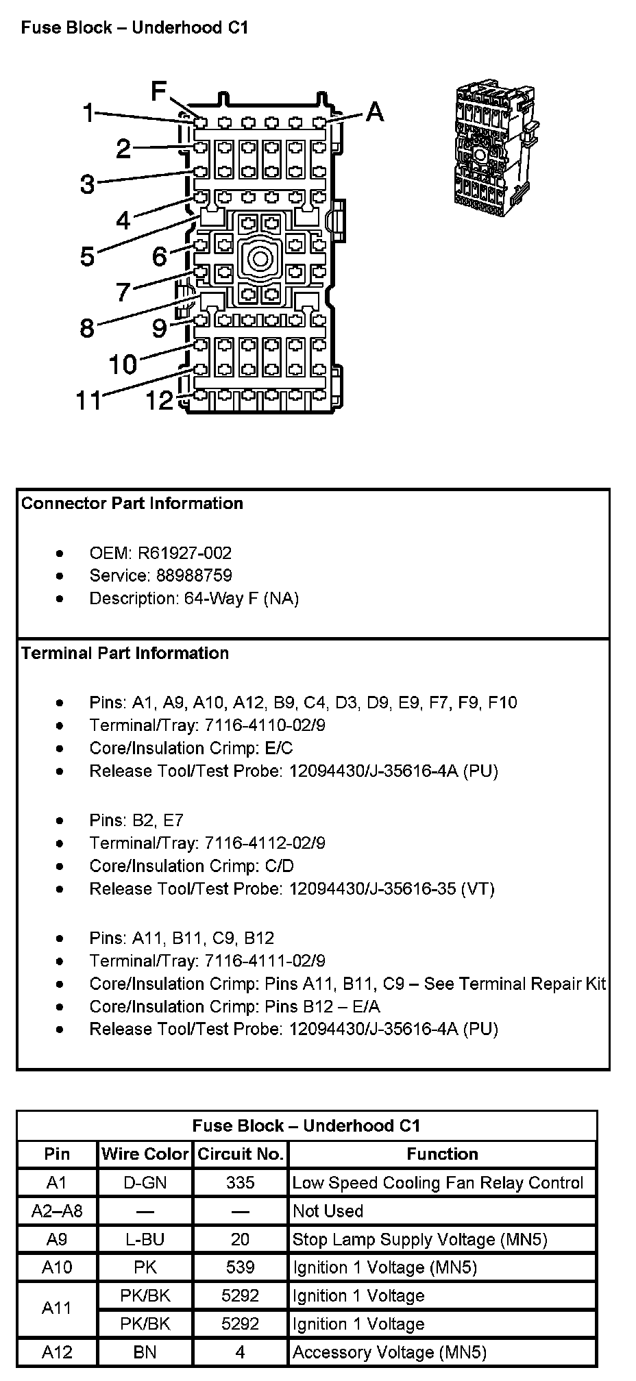 Fuse Block - Underhood C1 (Pin A1 To A12):