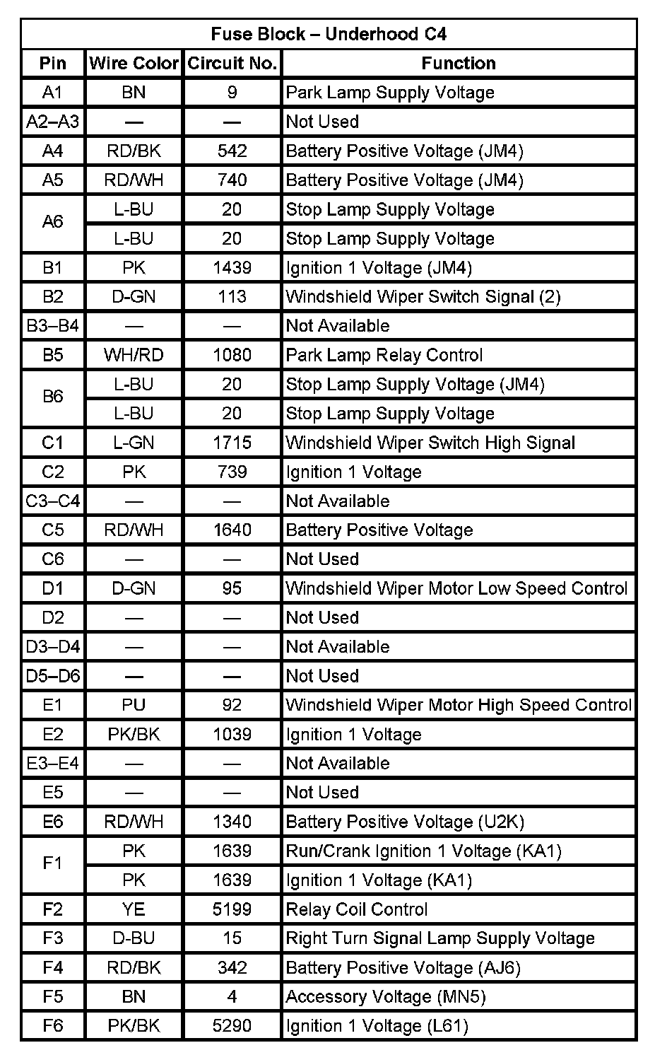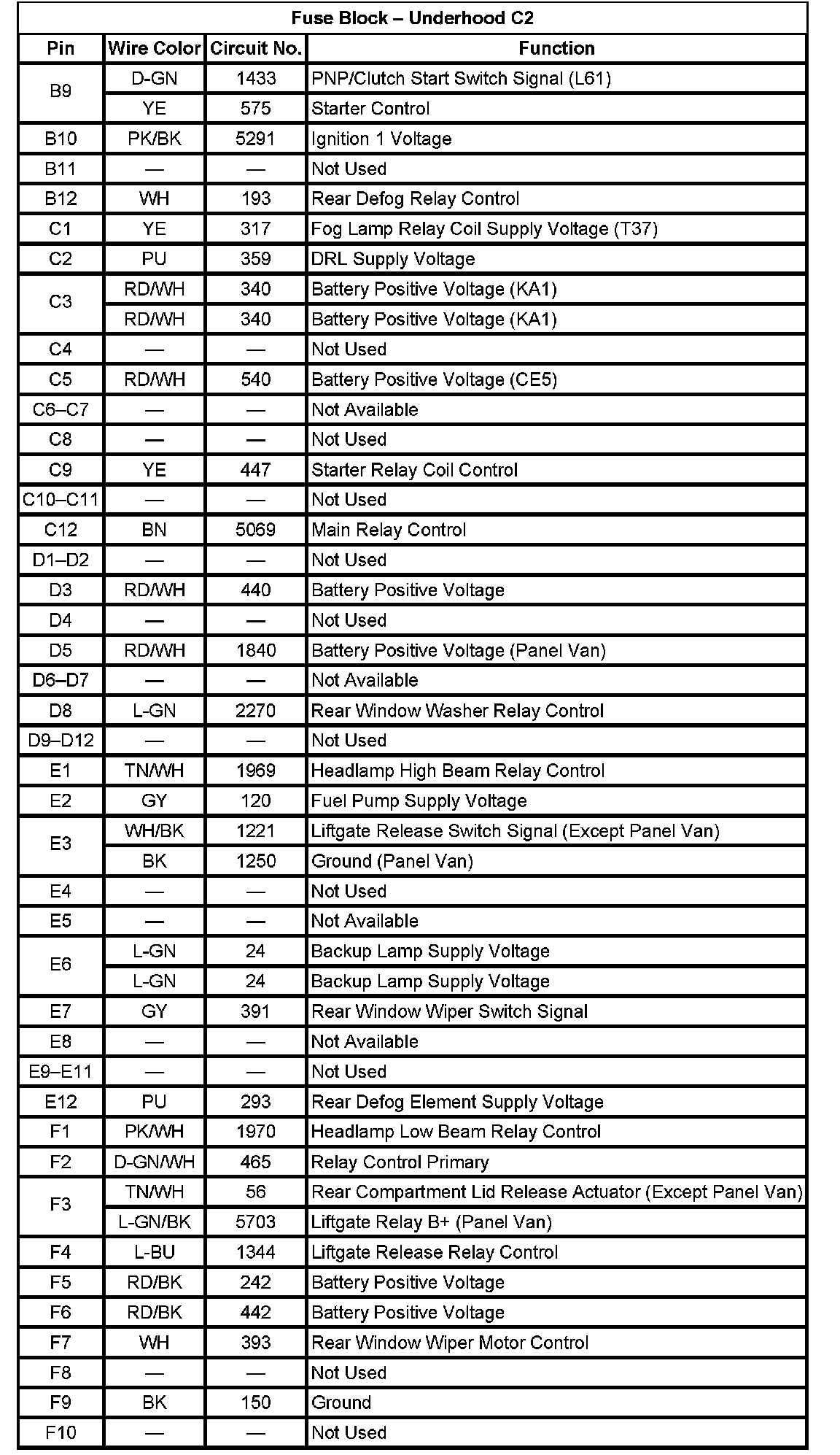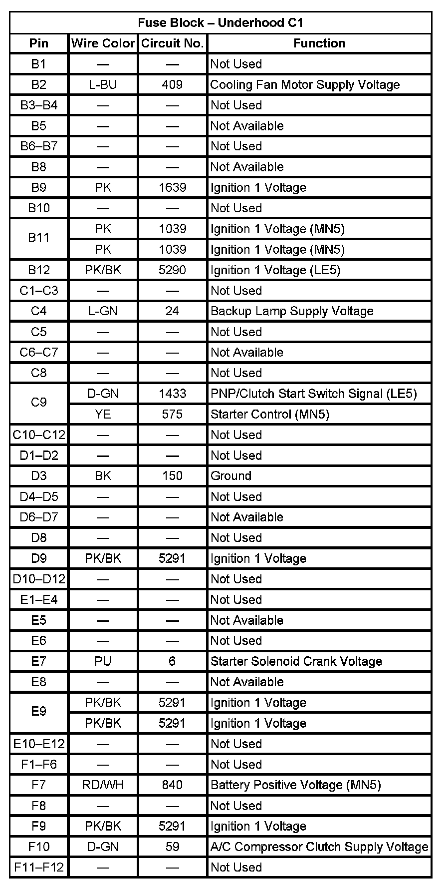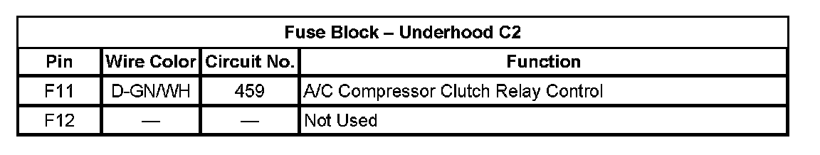 Fuse Block - Underhood C2 (Pin F11 To F12):
