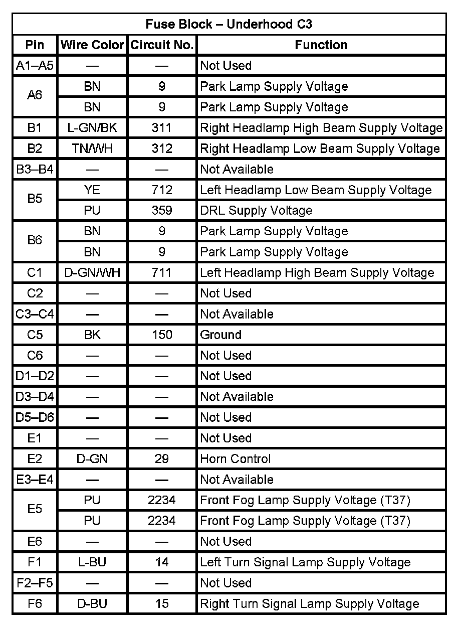 Fuse Block - Underhood C3 (Pin A1 To F6):