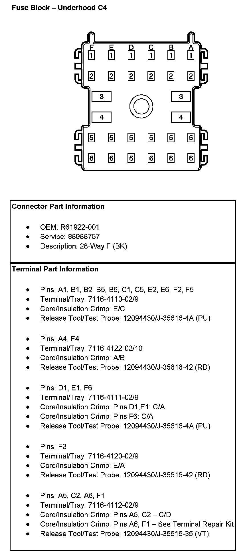 Fuse Block - Underhood C4 (Pin A1 To F6):