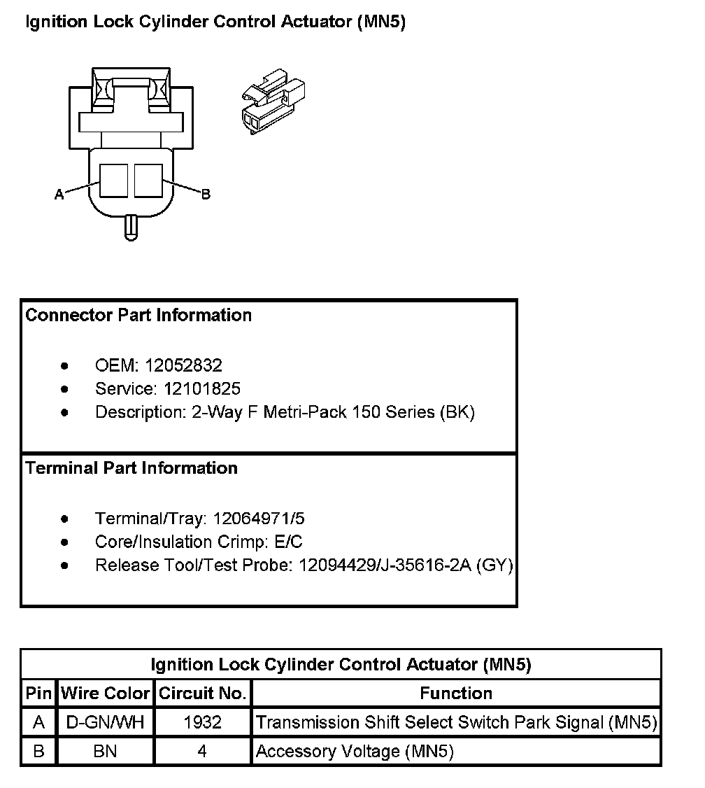 Ignition Lock Cylinder Control Actuator (With RPO Code MN5):