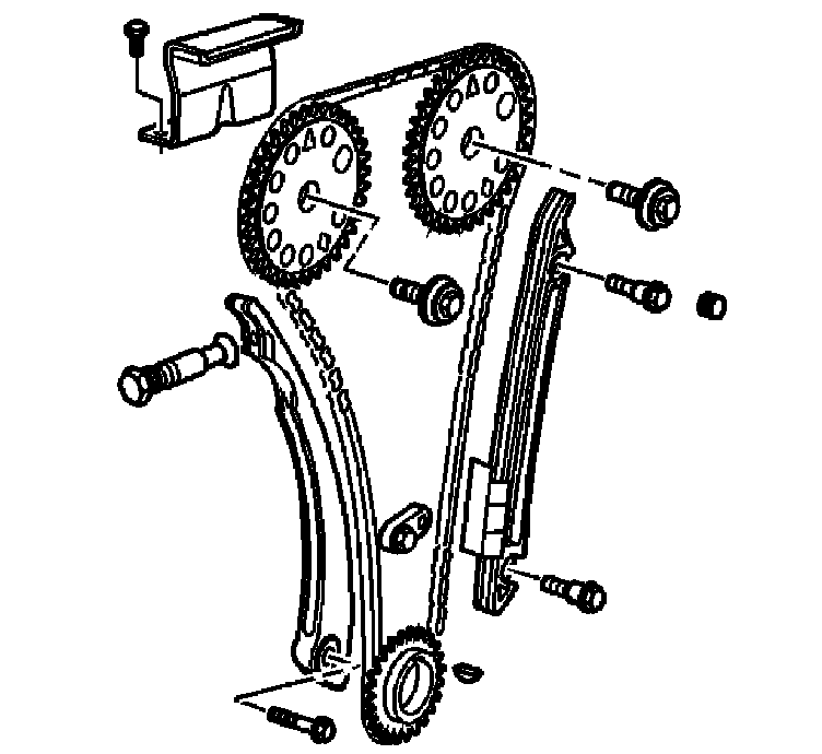 2. Replace the timing chain guides if wear exceeds 1.12 mm (0.045 in) depth on the chain guide surface.