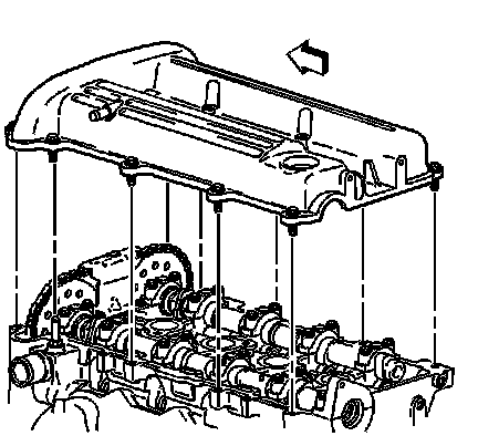 1. Assemble the camshaft cover and gasket. Ensure that the gasket is located in the retaining groove in the camshaft cover.