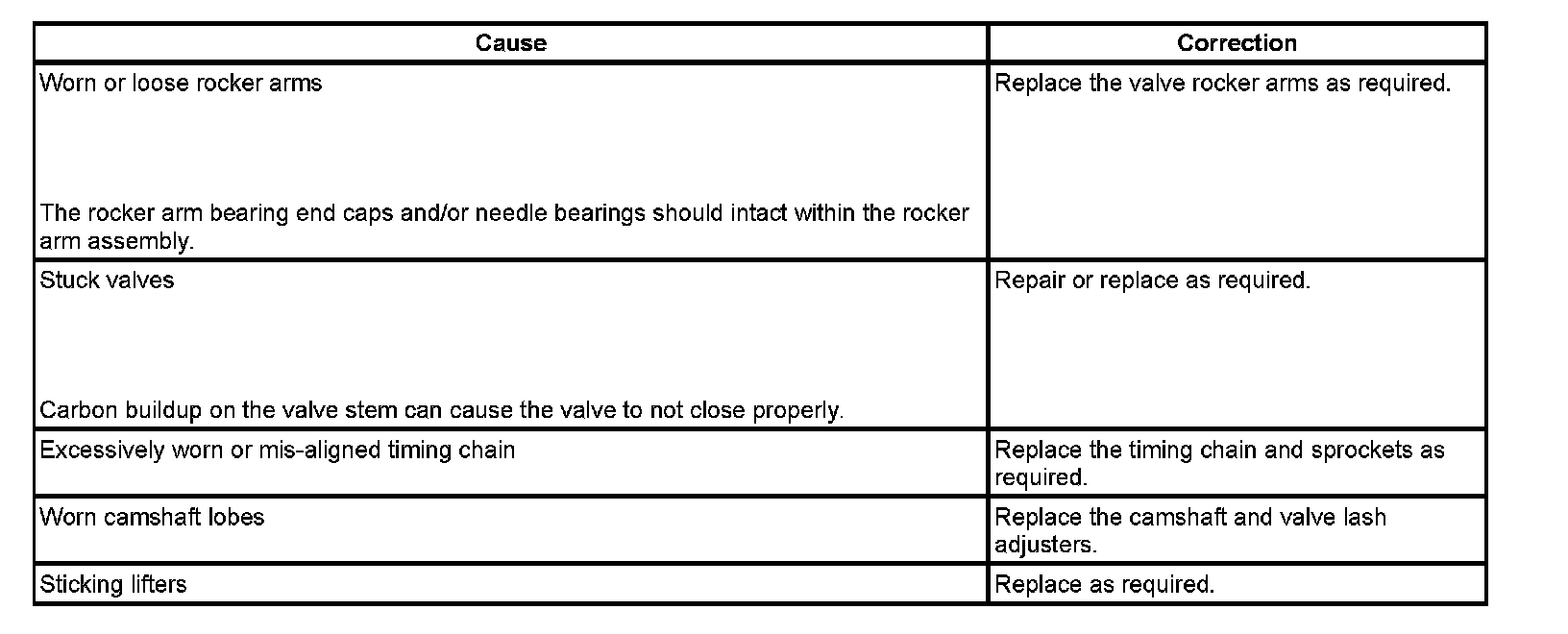 Base Engine Misfire with Abnormal Valve Train Noise: