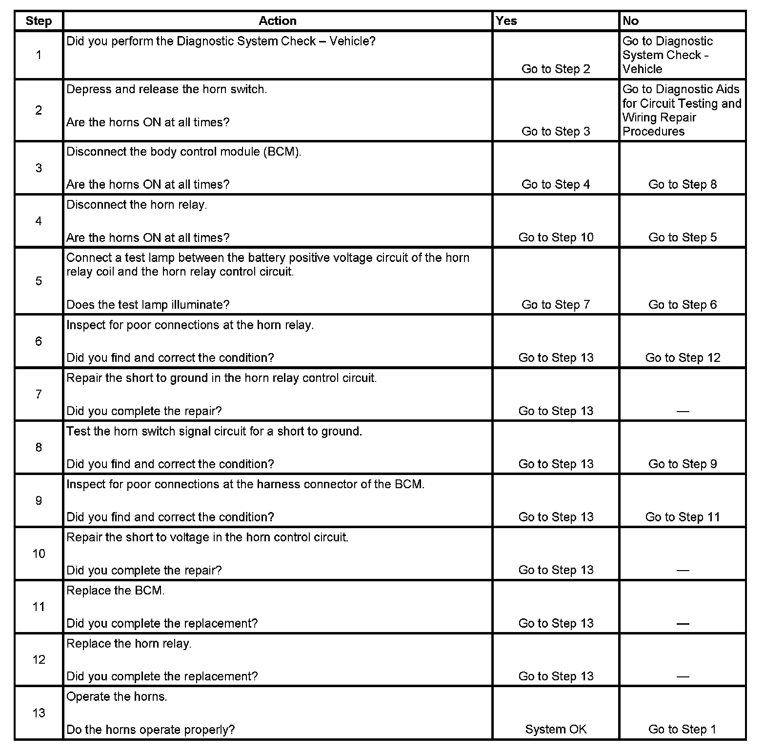 The number below refers to the step number on the diagnostic table.