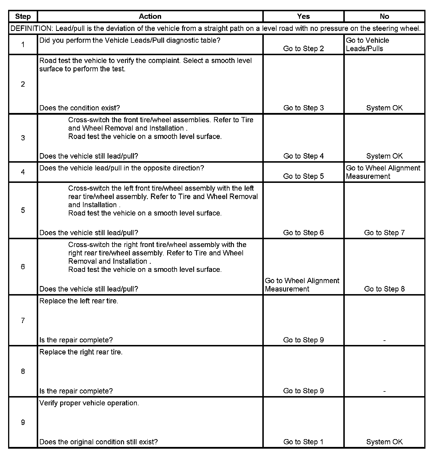 Radial Tire Lead/Pull Correction