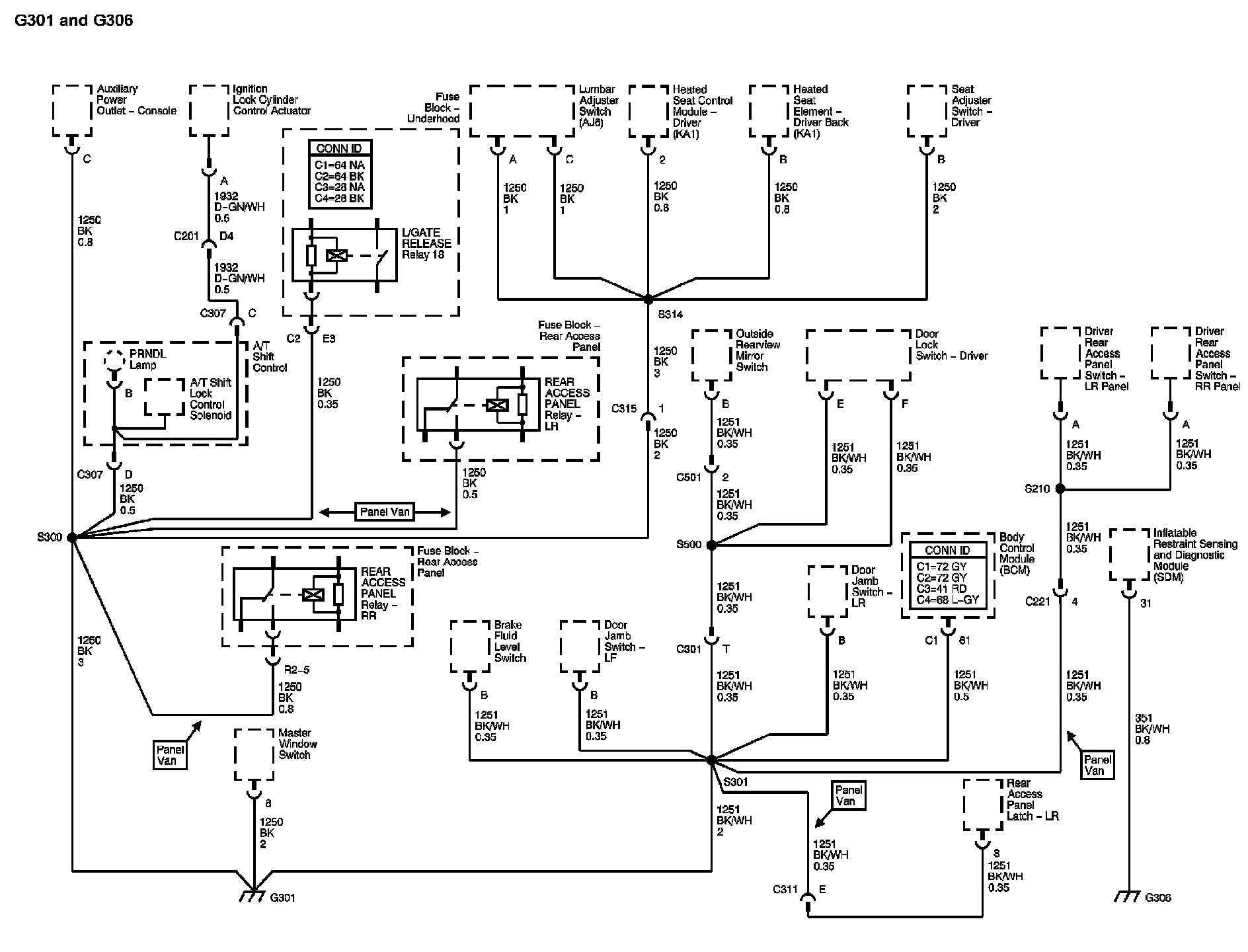 The locations for the Connectors, Grounds, Splices, and Grommets shown within these diagrams can be found via their numbers at Vehicle Locations.