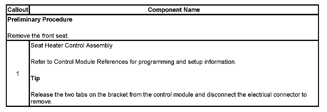 FRONT SEAT HEATER CONTROL MODULE REPLACEMENT