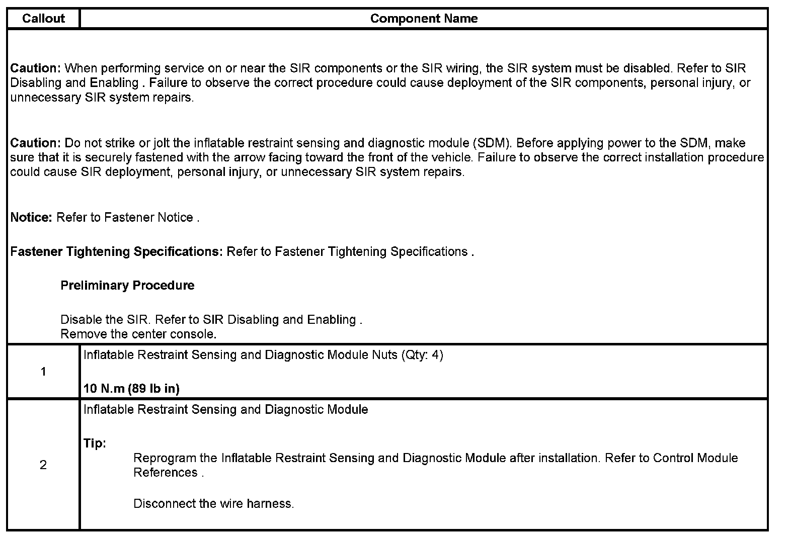 Inflatable Restraint Sensing and Diagnostic Module Replacement