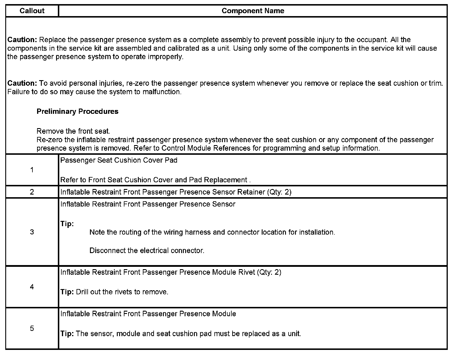 Inflatable Restraint Passenger Presence System Replacement - Front