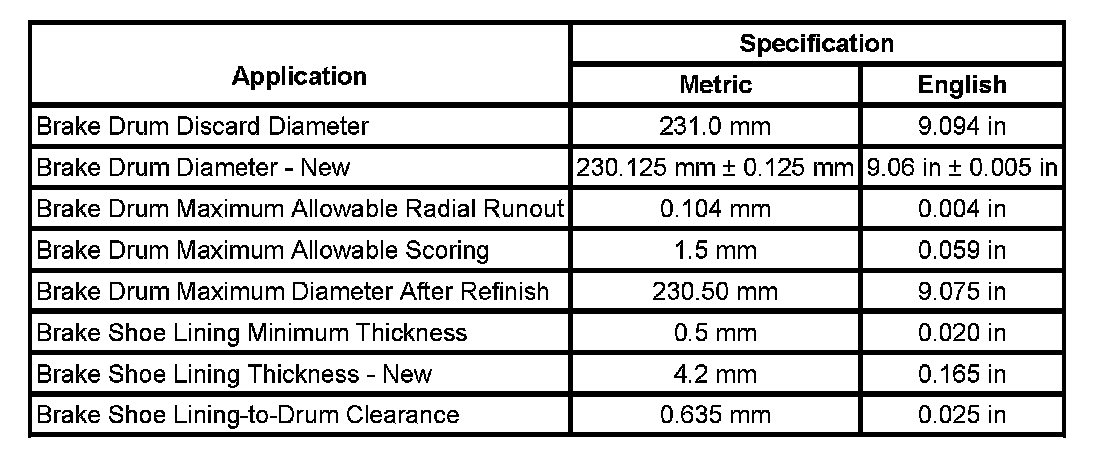 Drum Brake Component Specifications:
