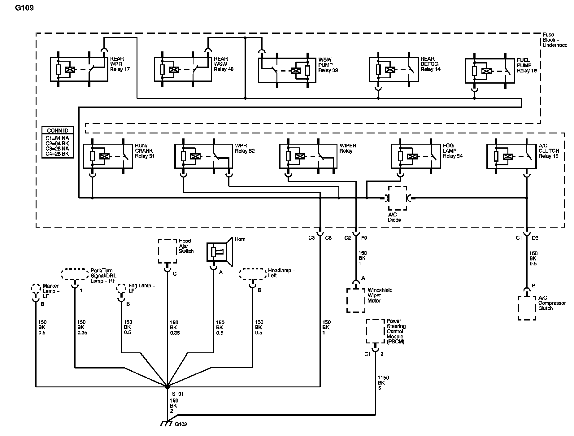 The locations for the Connectors, Grounds, Splices, and Grommets shown within these diagrams can be found via their numbers at Vehicle Locations.