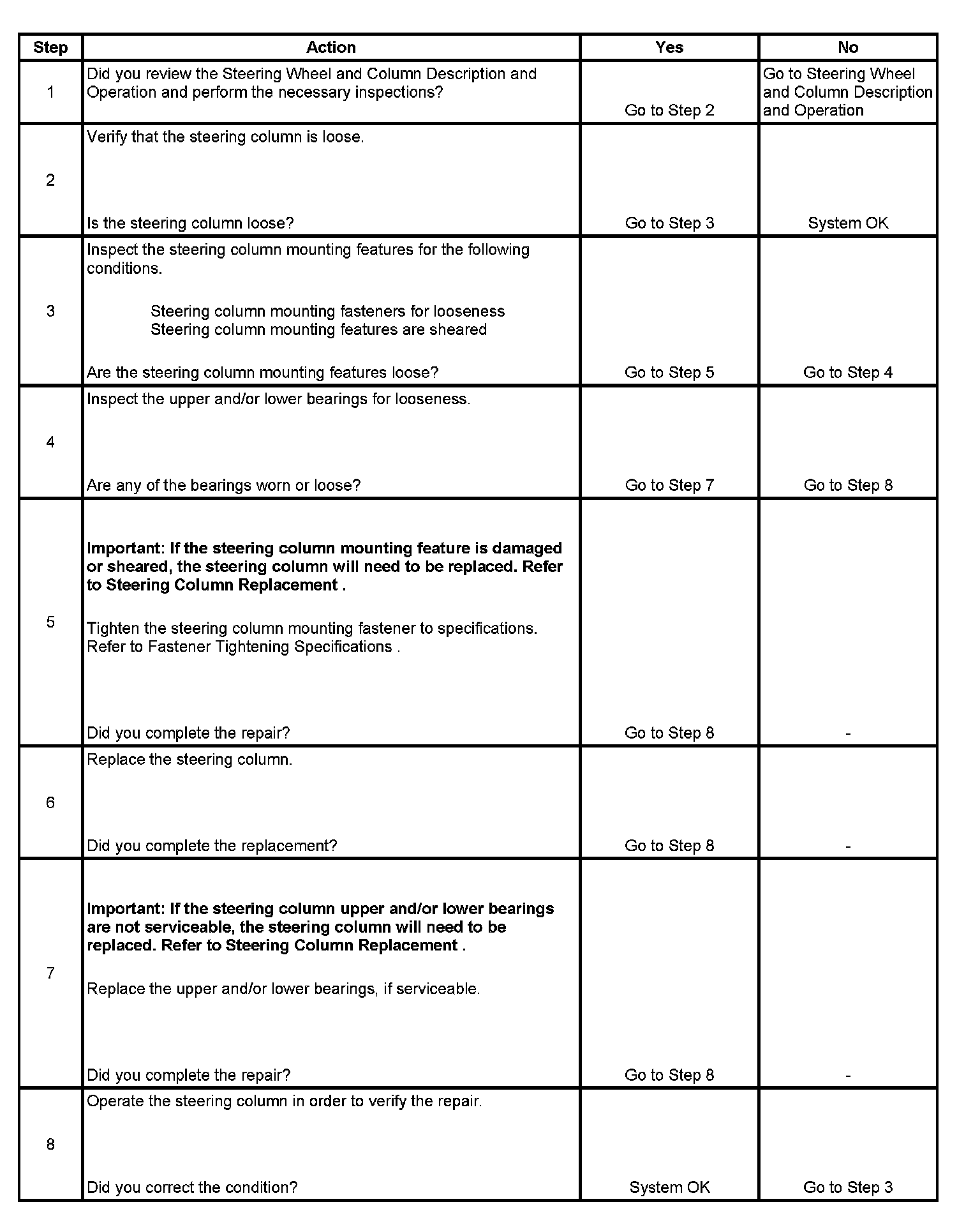 Looseness in Steering Column