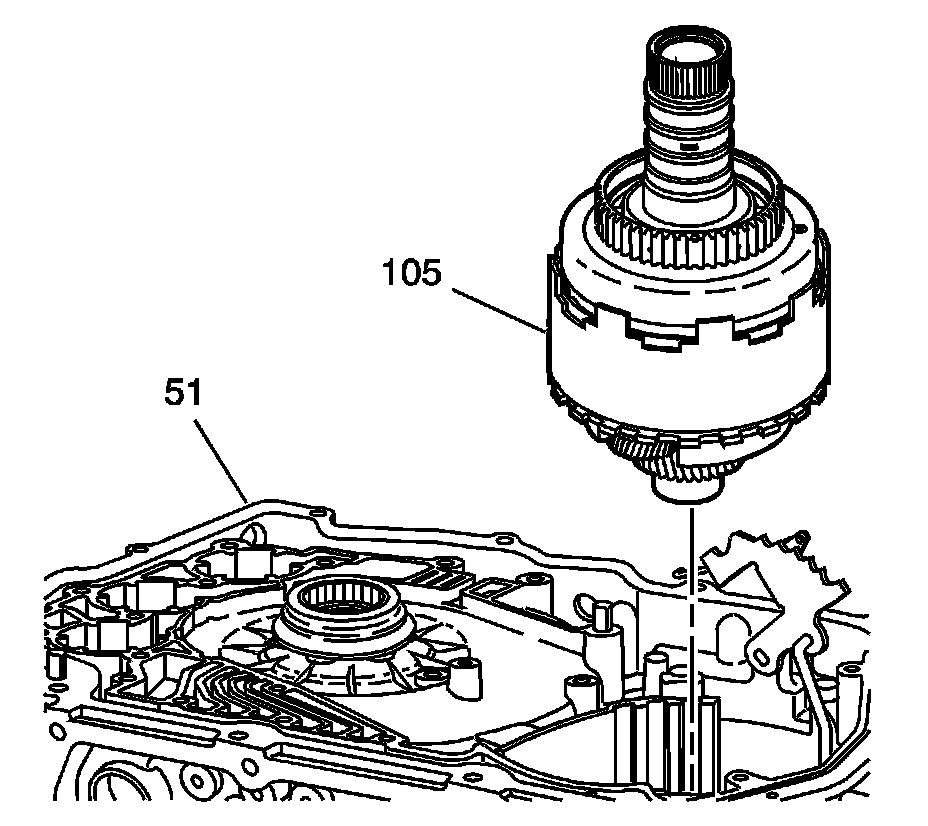 Install the direct/coast clutch and reaction carrier assembly (105) into the transmission case (51).