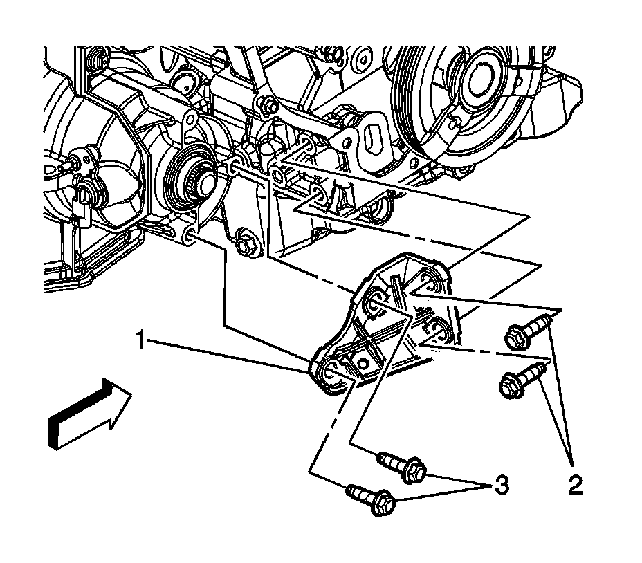 13. Install the transmission brace to transmission bolts (3).