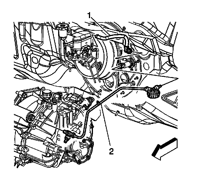 6. Disconnect the clutch line (2) from the clutch master cylinder.