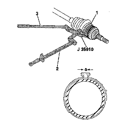 11. Place the large seal retaining clamp around the seal and close using J 35910.