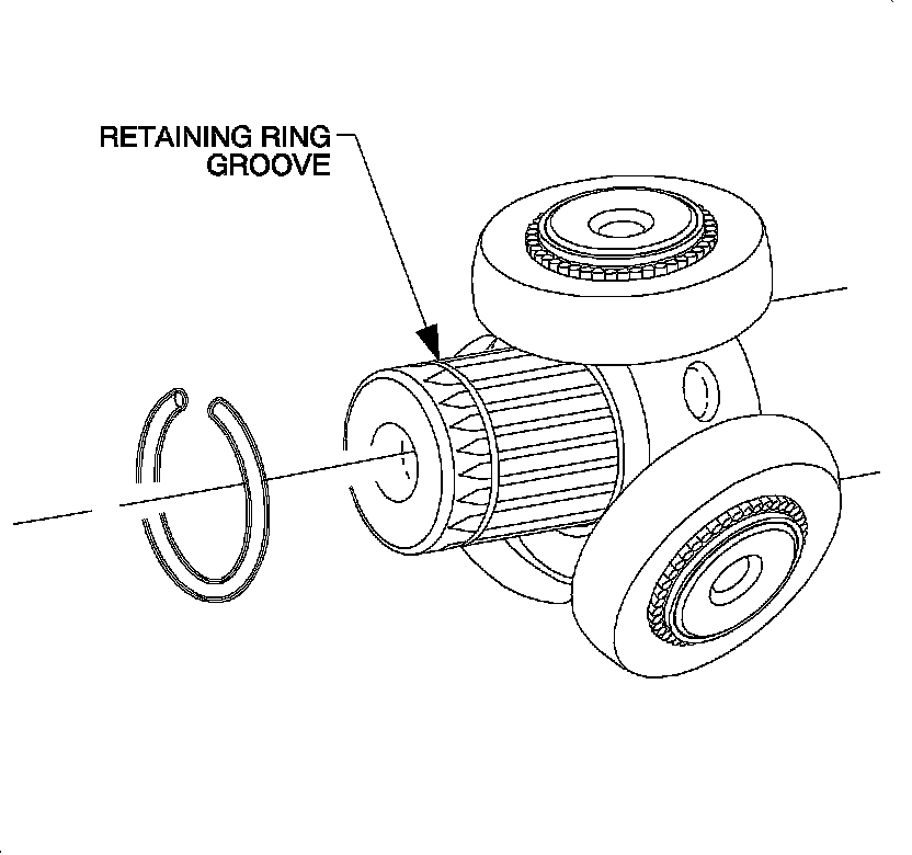 7. Remove the retaining ring from the groove on the wheel drive shaft bar and remove the spider assembly.