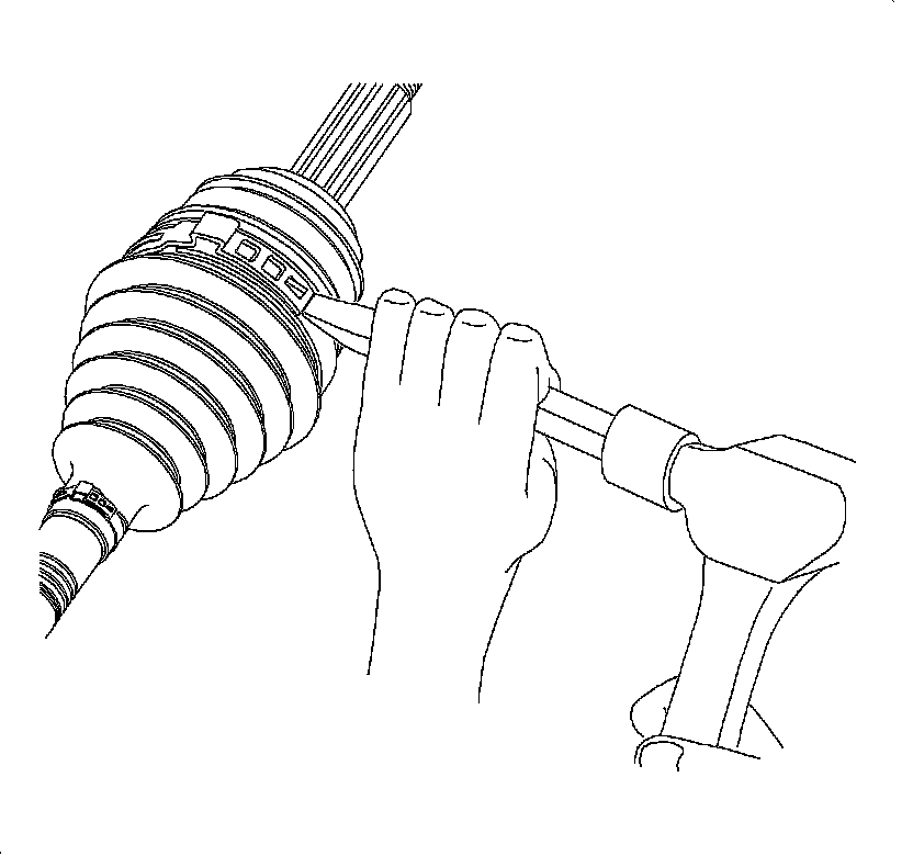 5. Separate the constant velocity (CV) joint boot from the CV joint race at the large diameter.