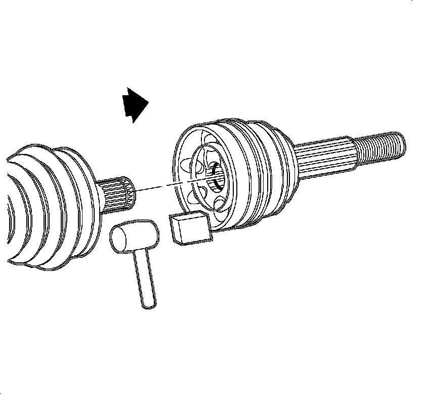 13. Place a block of wood against the CV joint spindle and tap on the block of wood until the CV joint inner race engages the retaining ring.