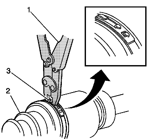 15. Using the J 46588, latch the large seal retaining clamp. Ensure the latching tangs are full engaged in the large seal clamp band.