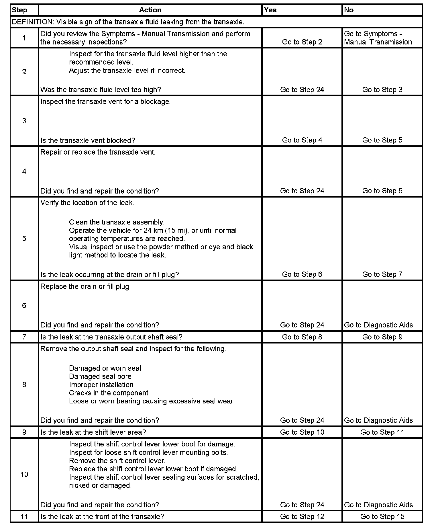5. Use an approved method to clean the transaxle to ensure the leak location is correctly identified. If using a powder method or dye method, ensure the products are compatible with the transaxle fluid.