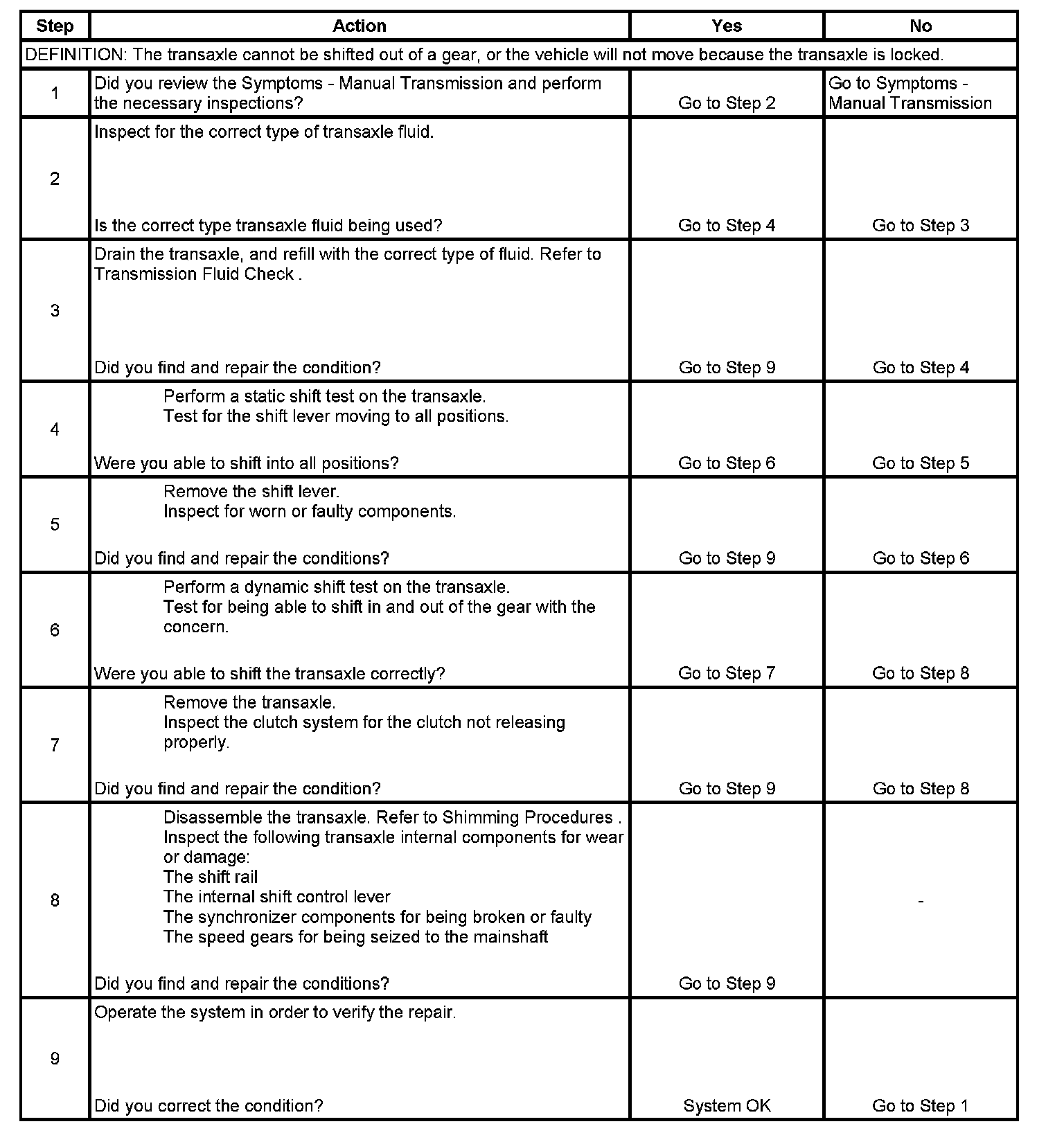 4. A static shift test is performed by shifting into all gears with the engine not operating. By confirming that the transaxle can be shifted into all positions, ensures that the shift lever is not excessively worn or damaged.