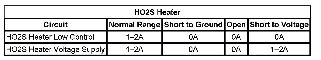 * The ECM detects that the HO2S 1 Heater parameter is more than 2.5 amps or less than 0.25 amp.