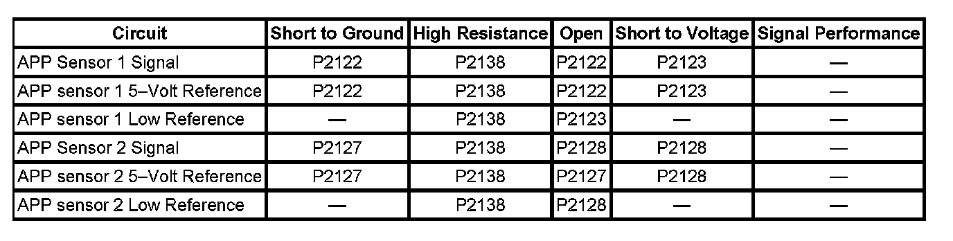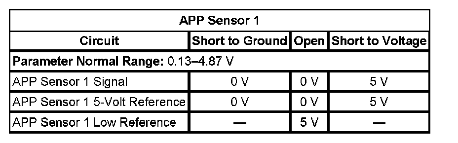 - Accelerator Pedal Position (APP) Sensor 1 Circuit High Voltage