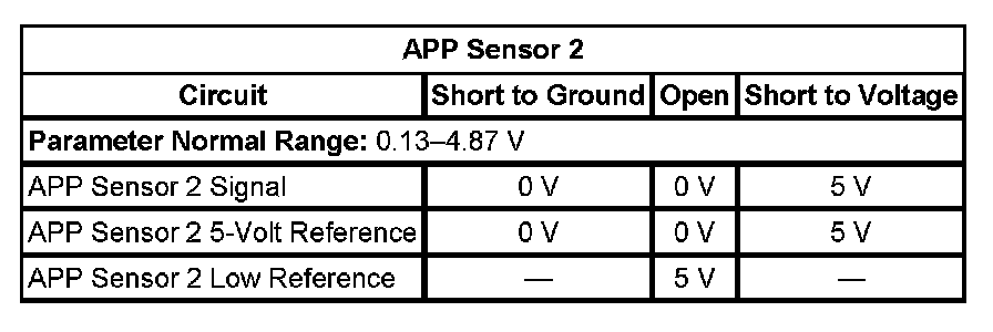 - Accelerator Pedal Position (APP) Sensor 2 Circuit High Voltage