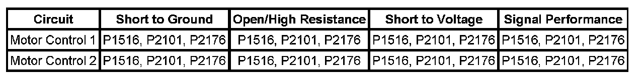 * DTC P1516, P2101, and P2176 are Type A DTCs.