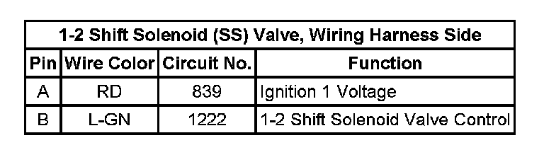 1-2 Shift Solenoid (SS) Valve, Wiring Harness Side: