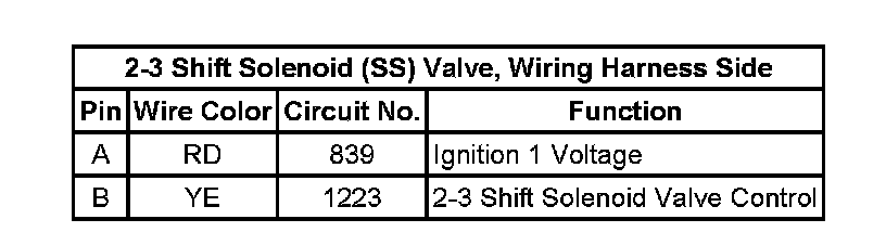 2-3 Shift Solenoid (SS) Valve, Wiring Harness Side: