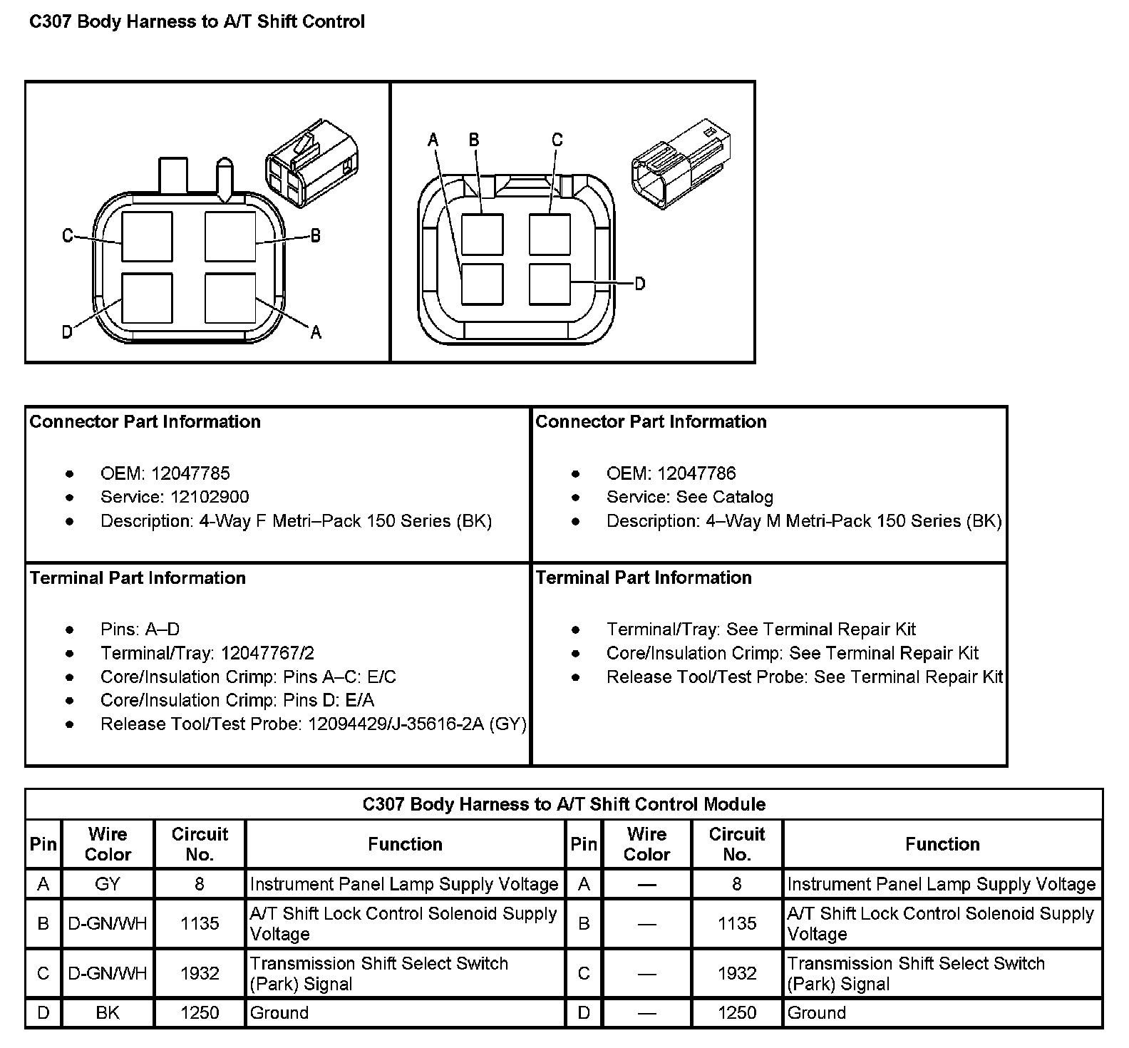 C307 Body Harness To A/T Shift Control: