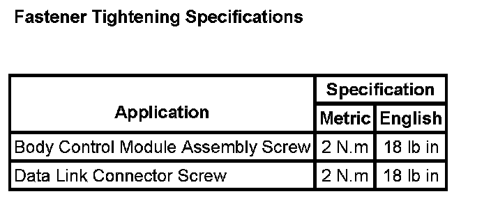 Fastener Tightening Specifications: