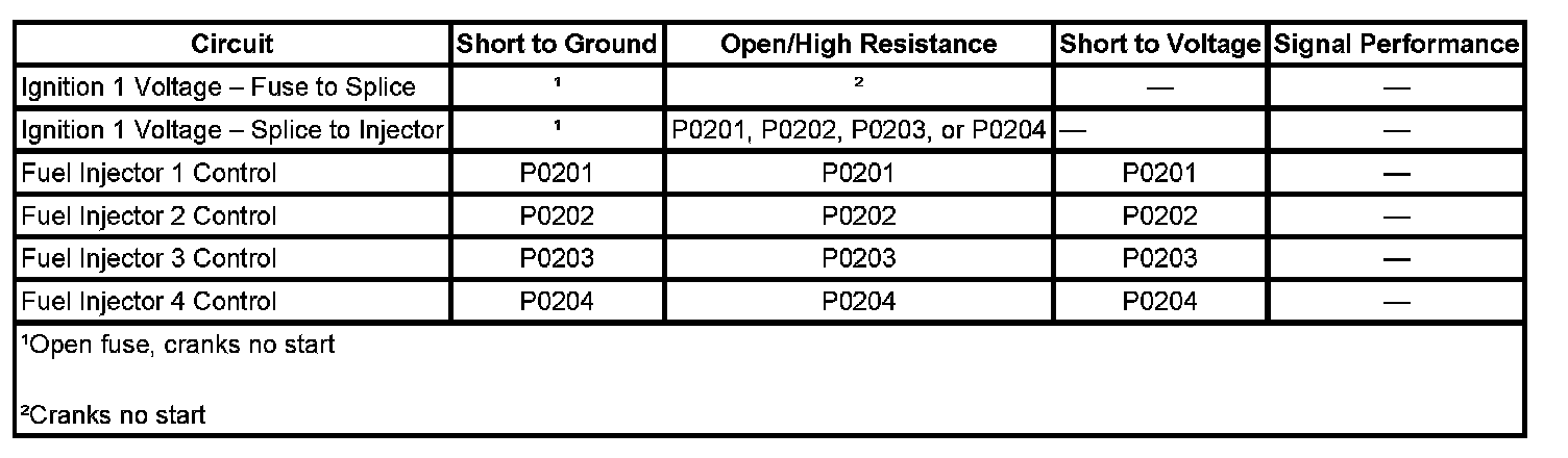 • If the test lamp does not illuminate, test the ignition circuit for a short to ground or an open/high resistance. If the circuit tests normal and the ignition circuit fuse is open, test or replace the fuel injector.